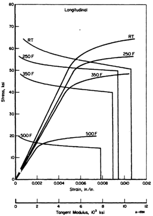Figure 2. Typical tensile stress-strain curves at temperature for 7475-T7351 aluminum alloy plate (transverse)[1]