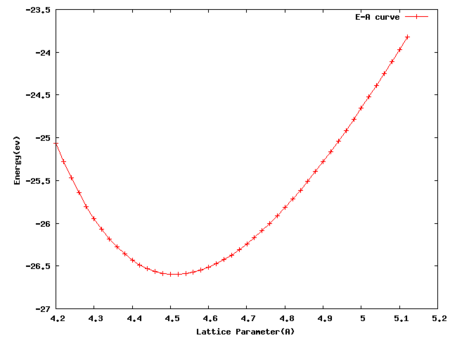 Where the lattice parameter A0 = 4.52 Angstrom. Cohesive energy Emin = -2.659 eV.