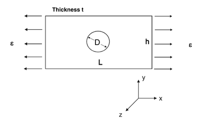 Fig. 1. Geometry of void growth specimen (with single void at the center) subjected to uniaxial tension under constant strain rate.